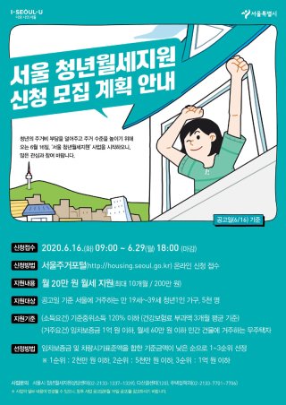 서울시에서 청년들의 주거 안정을 위해 월 최대 20만 원의 월세 지원을 시작한다고 합니다. 😊