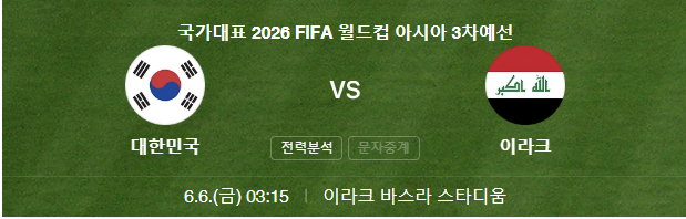 - 중요한 이라크전: 6월 6일(한국시간) 이라크 원정 경기가 2026 북중미 월드컵 본선 진출의 핵심 승부처입니다.